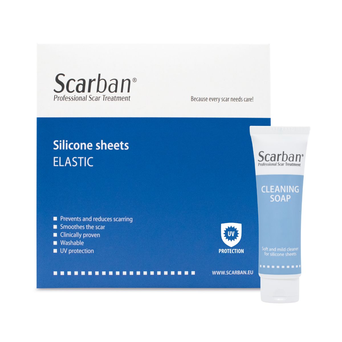 Silicone therapy is the gold standard for scar care and clinically proven to improve both the function and appearance of scars. Scarban offers premium medical-quality treatment in a comfortable, reusable sheet that fits discreetly under clothing. Scarban silicone sheets also offers built-in sun protection, blocking at least 93% of harmful UV rays to further protect vulnerable scar tissue.